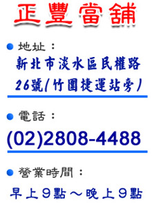 2.利息(以當舖法規定為準) : 月息最低1%~最高2.5%[年利率最低12%最高30%] (提早結清以日計算,無違約金)